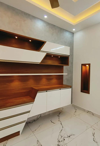 A fine dining room experience is an integral part of home interior décor and requires crockery unit, wash area, dining table and chairs, chest of drawers, bar counter (if required).