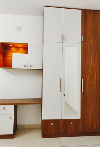 Materials Used: Outer Finish: Laminate (glossy and matt), acrylic, lacquer glass, PU finish, PU lacquer glass, veneer and leather.